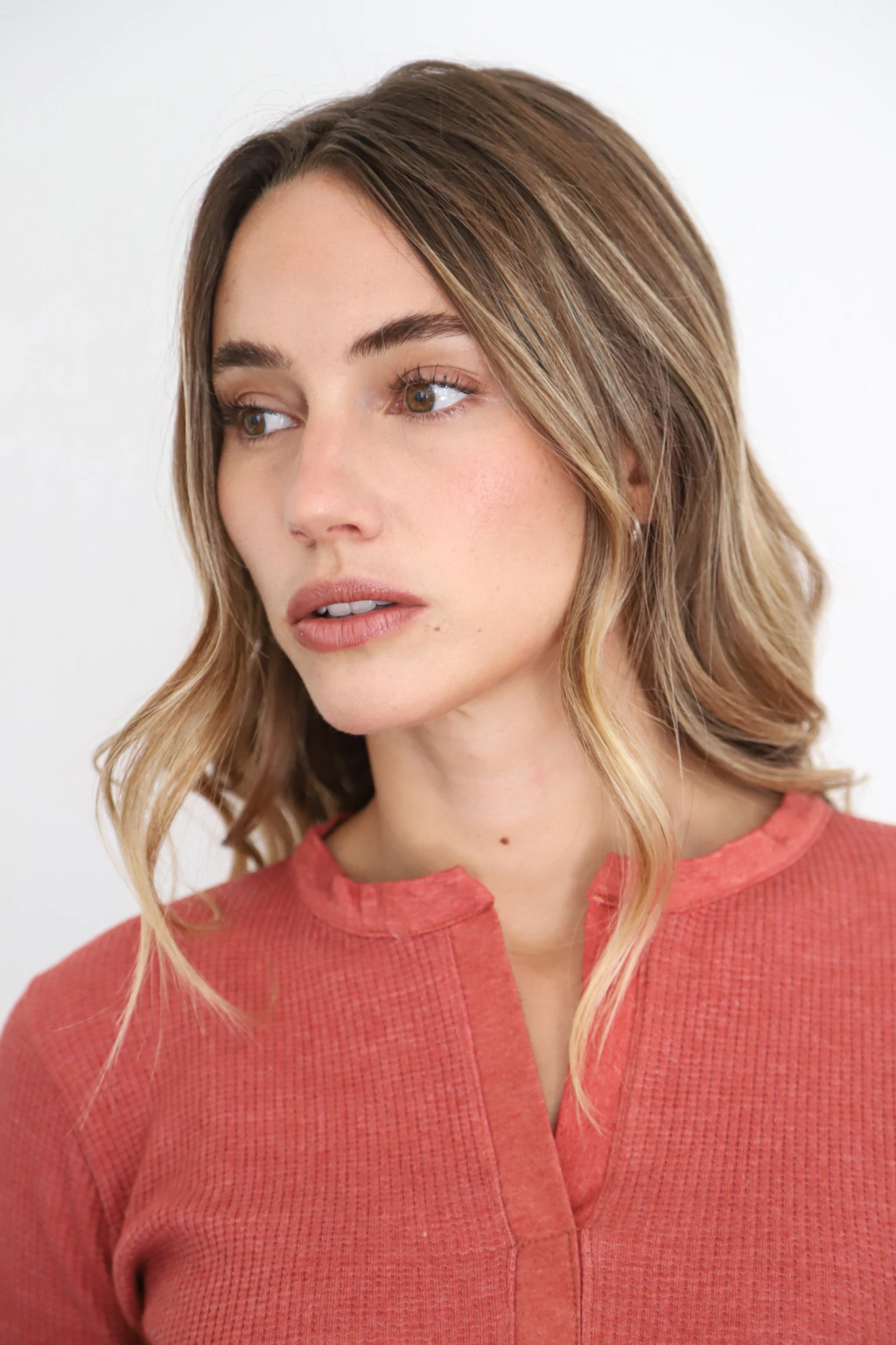 Ésta remera no es la típica básica de manga larga, su textura y teñido vintage le da un toque distintivo. Los colores están armados para que puedas combinarlos con nuestros pantalones, estilo monocromo.
